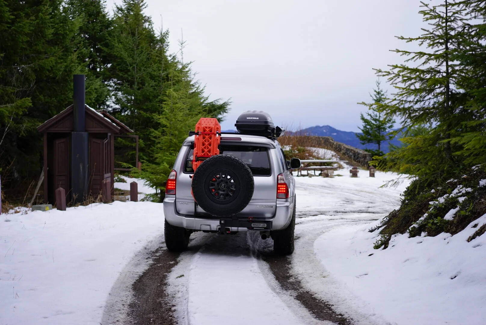 Kenda Klever 285/70/17s (33”s) - 6 in rotation - I used to run the Goodyear Duratracs (which are incredible for snow/mud) but decided to switch it up on recommendation on a friend. The Kenda’s are a great discount tire and have performed well while I’ve been in the PNW. I’ve been surprised about how well they handle in deep water on the highway, climbing muddy forest roads, and even through snow.